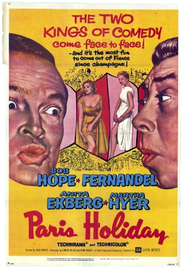 ![]() | Paris Holiday (1958) (BluRay) American actor, Bob Hunter, travels to Paris to purchase the rights to a highly sought-after script, and meets his French counterpart Fernydel along t ...<more>