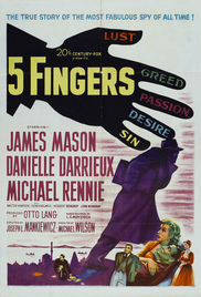 ![]() | 5 Fingers (1952) (DVDRip) During WWII the valet to the British Ambassador to Ankara sells British secrets to the Germans while trying to romance a refugee Polish countess. ...<more>